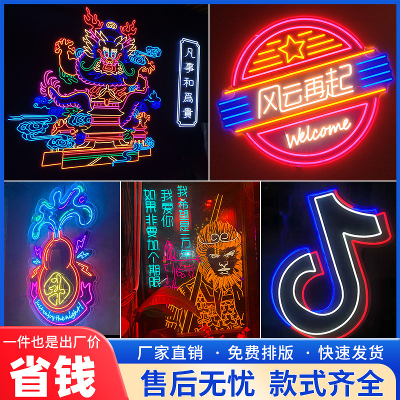 円形ネオン発光字LED看板バーネット赤背景壁屋外装飾バーベキュー看板