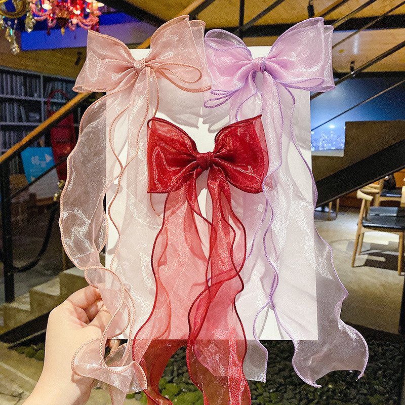 蝶結びのリボンのヘアピンの女性韓国の少女の超仙のヘアピンの後頭部のトップはネットの赤い女の子を挟んで髪を編みます。