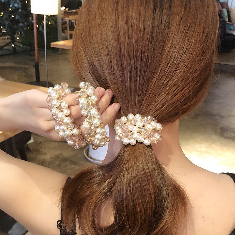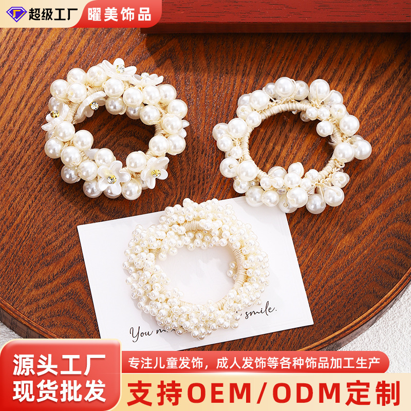 韓国真珠水晶髪輪甘い頭飾り森系頭ひも少女ネットレッドins風輪ゴム髪飾り
