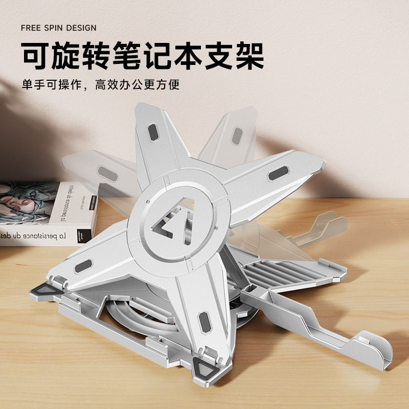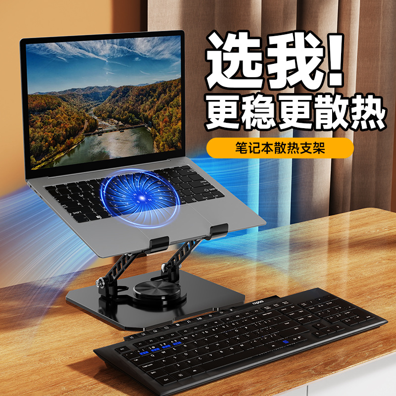 360度回転ノートパソコンスタンド、デスクトップ高さ調整折りたたみ式昇降合金冷却ベースコンピュータスタンド