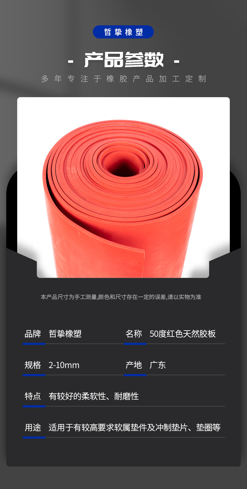 50度赤色天然ゴム板絶縁ゴム板緩衝減震ゴムマット天然ゴム板メーカー直販