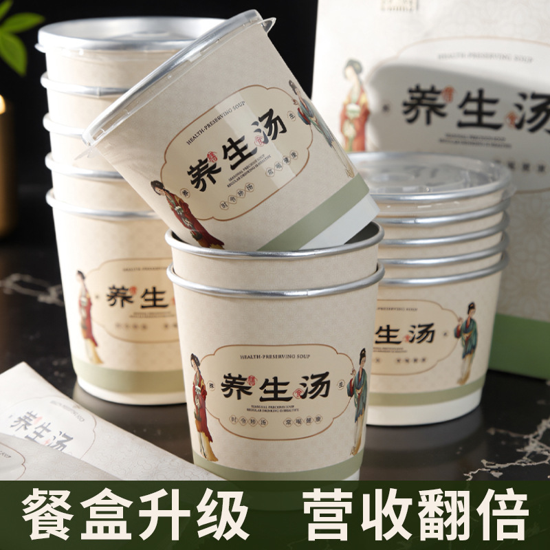 一次性纸碗外卖炖盅打包盒即弃碗食品级铝箔餐盒高档汤桶定制logo