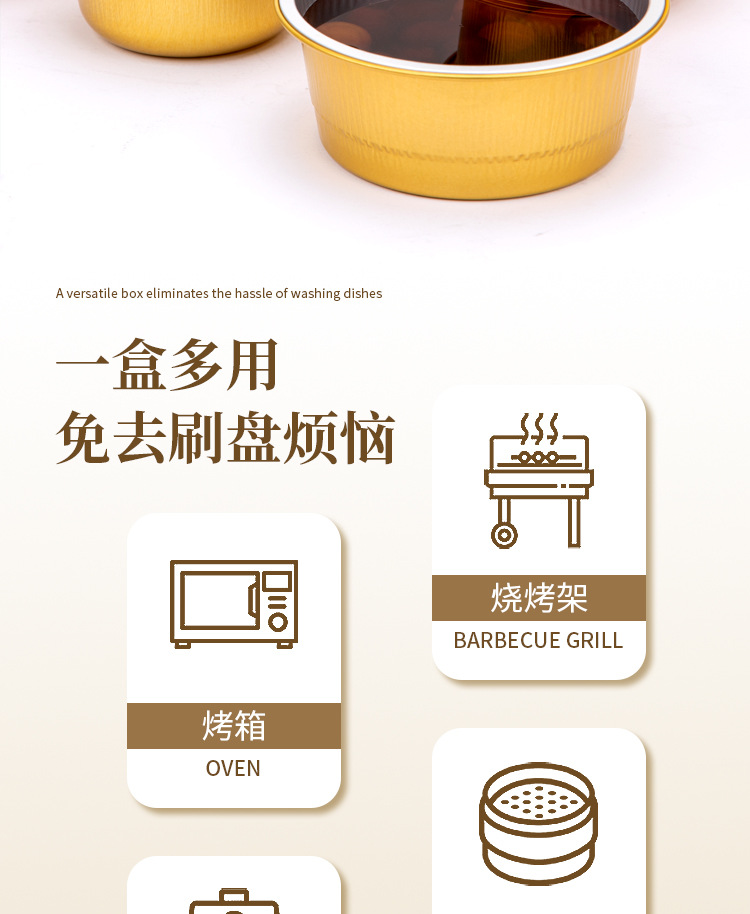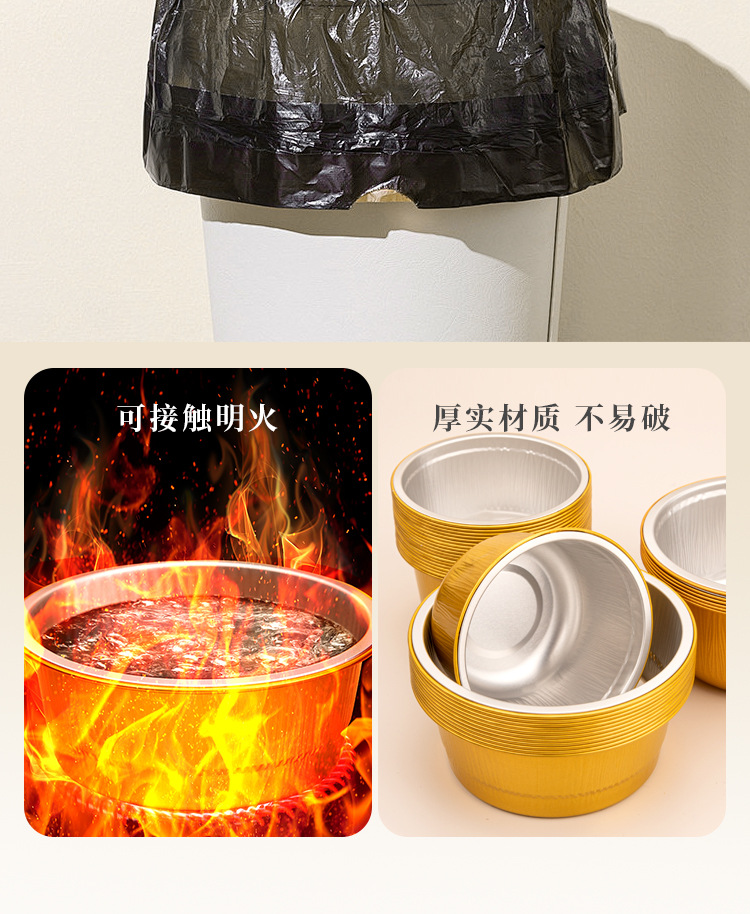 特厚アルミ箔碗皿金色使い捨て錫紙箱円形包装商用家庭用焙煎バーベキュー金色弁当箱