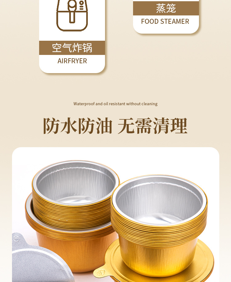 使い捨てのテイクアウト梱包箱アルミ箔錫紙箱鍋プレハブ料理空気フライヤーオーブン用ボウル金色円形