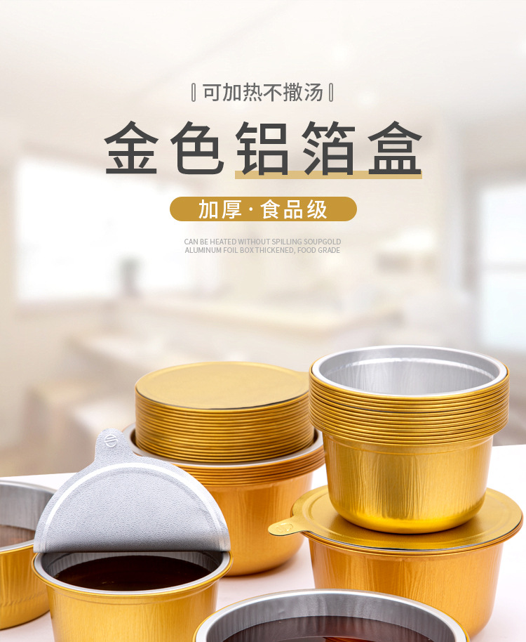円形の金色の錫の紙箱の食品級のアルミ箔の弁当箱の蒸し卵の砂糖の水は業務用の使い捨てのテイクアウトの包装箱を焼きます。