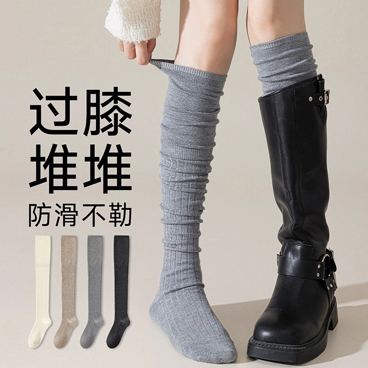堆堆袜配靴子羊毛女秋冬灰色长筒袜搭配长靴小腿袜2025新款中筒袜