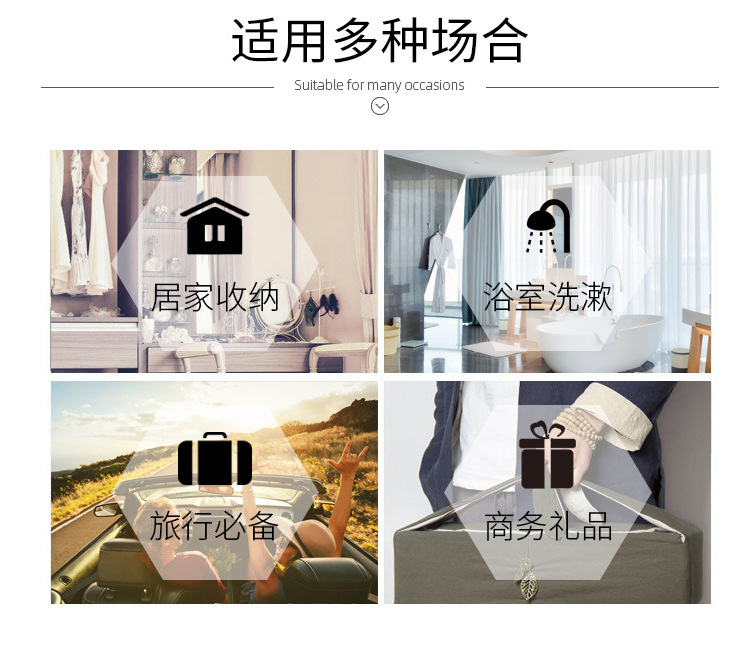 収納シーン 浴室収納、旅行収納、デスクトップ収納