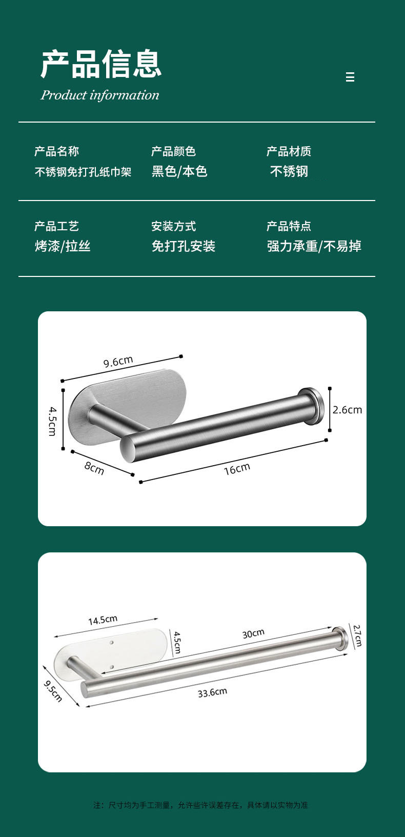 跨境纸巾架不锈钢毛巾杆厨房纸巾架免打孔卫生间壁挂式卫生卷纸架