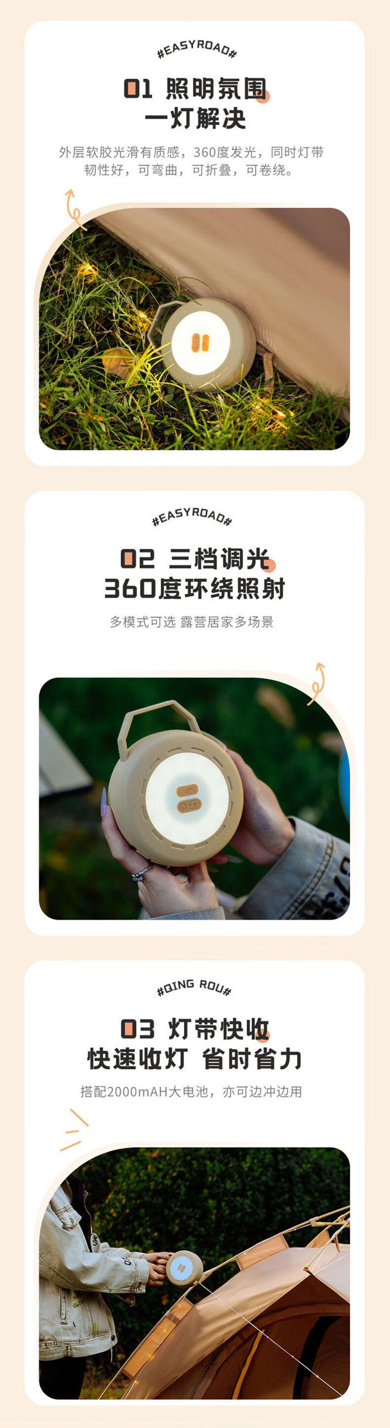 クロスボーダー新型LED屋外キャンプライトカラフルストリングライト巻き尺収納屋外雰囲気テントライトキャンプライト