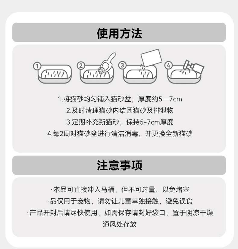 7.猫砂重量可能会有0.3kg左右额误差,运输过程中可能产生少量灰尘,包裹有轻微破损 不漏砂可以正常使用。不作为售后依据。如介意,慎拍哦!