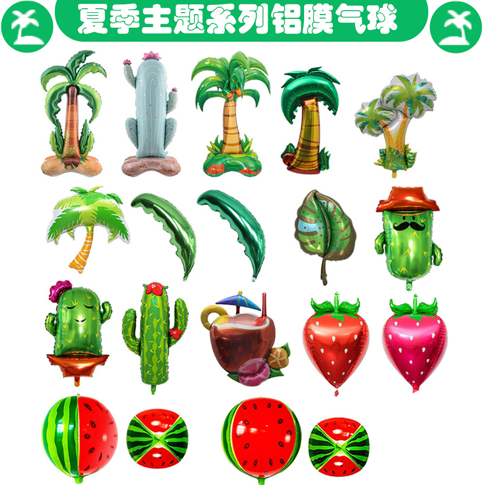 夏大型立体ココナッツツリーサボテンアルミフィルムバルーンハワイ子供の夏のパーティーイチゴ装飾セット