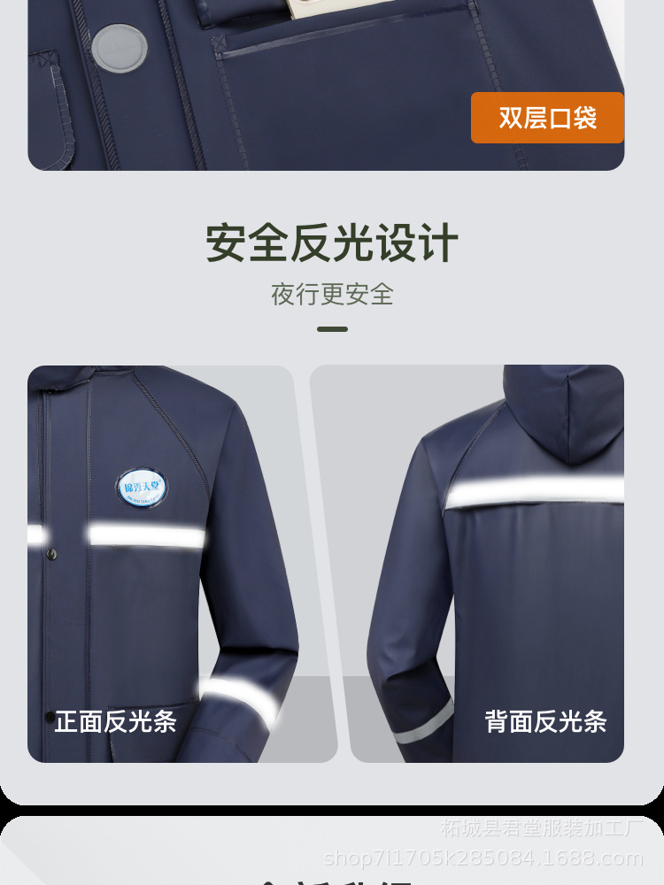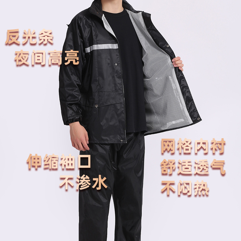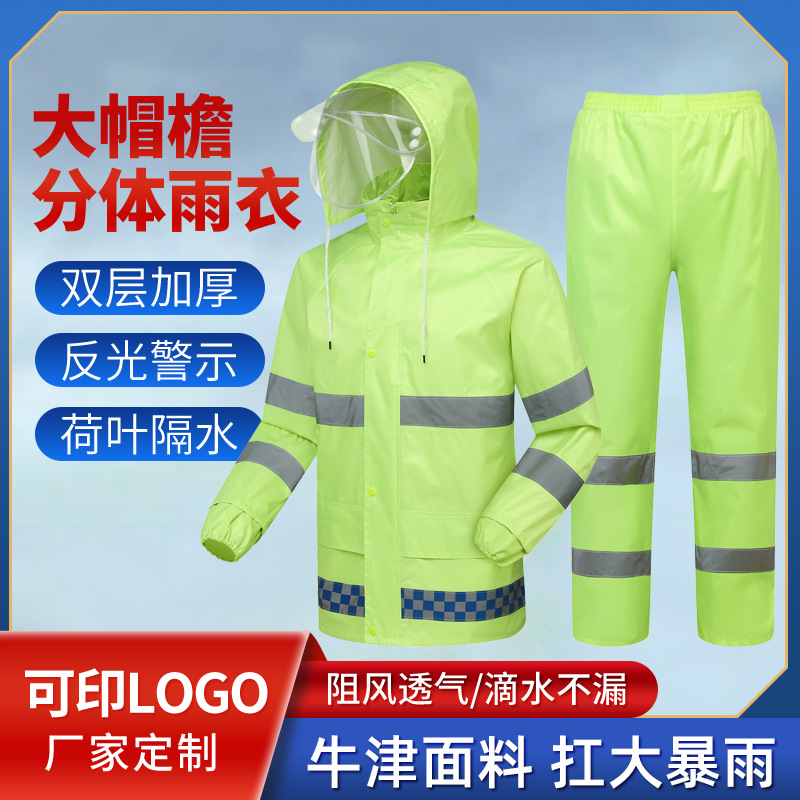 オックスフォード布製 大人用 分離型レインコート&レインパンツセット 反射材付き 卸売 防雨 作業服 厚手