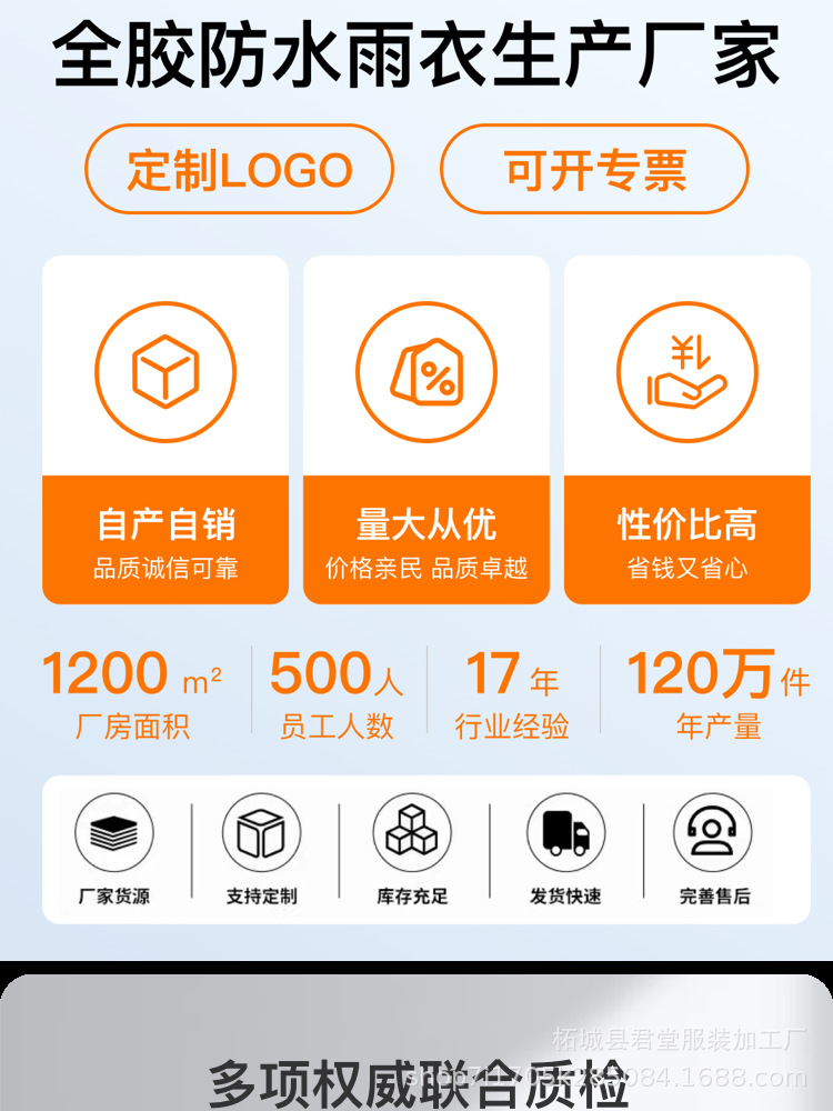 工場認定オレンジ色の完全防水衛生用レインコート、分割式反射防水服、市営庭園清掃用レインパンツ、大雨対策