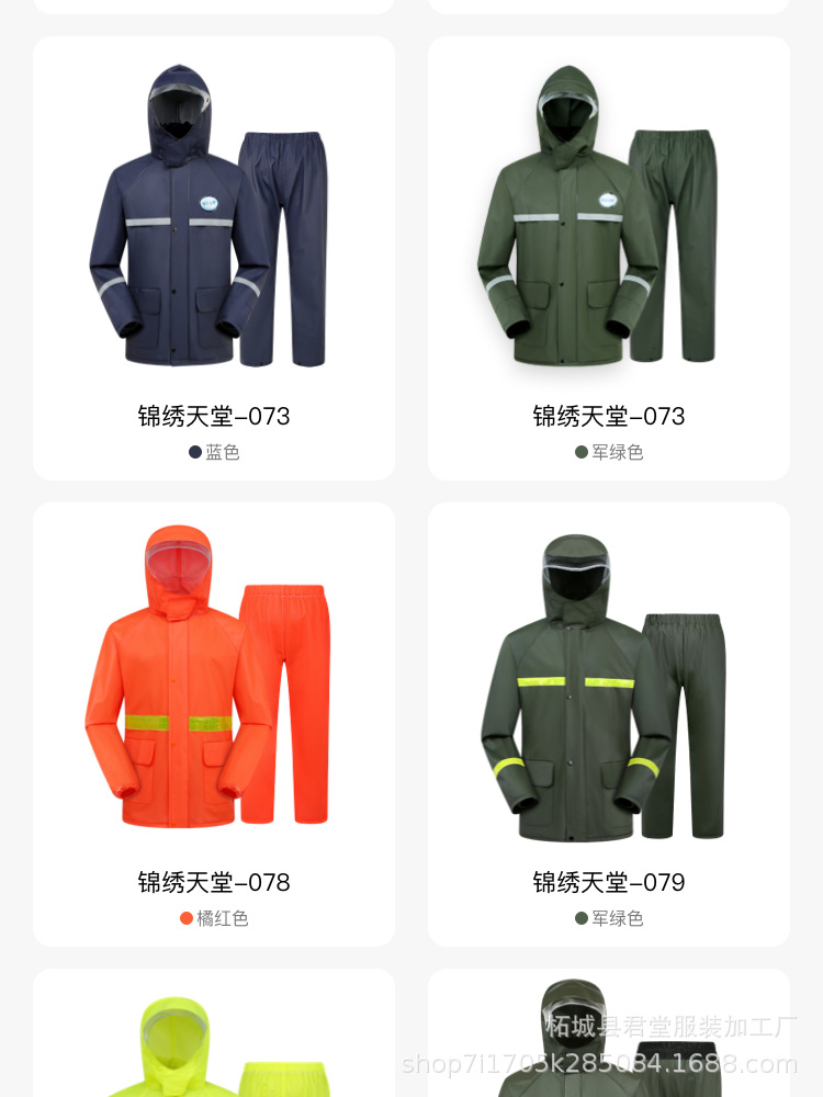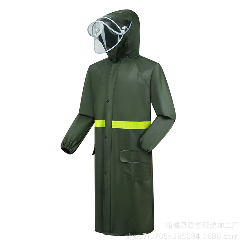 オリーブグリーンのレインコート、分離型、男性用、アウトドアサイクリング、救助、防洪、厚手、全身防雨、レインコートとレインパンツのセット