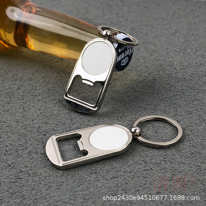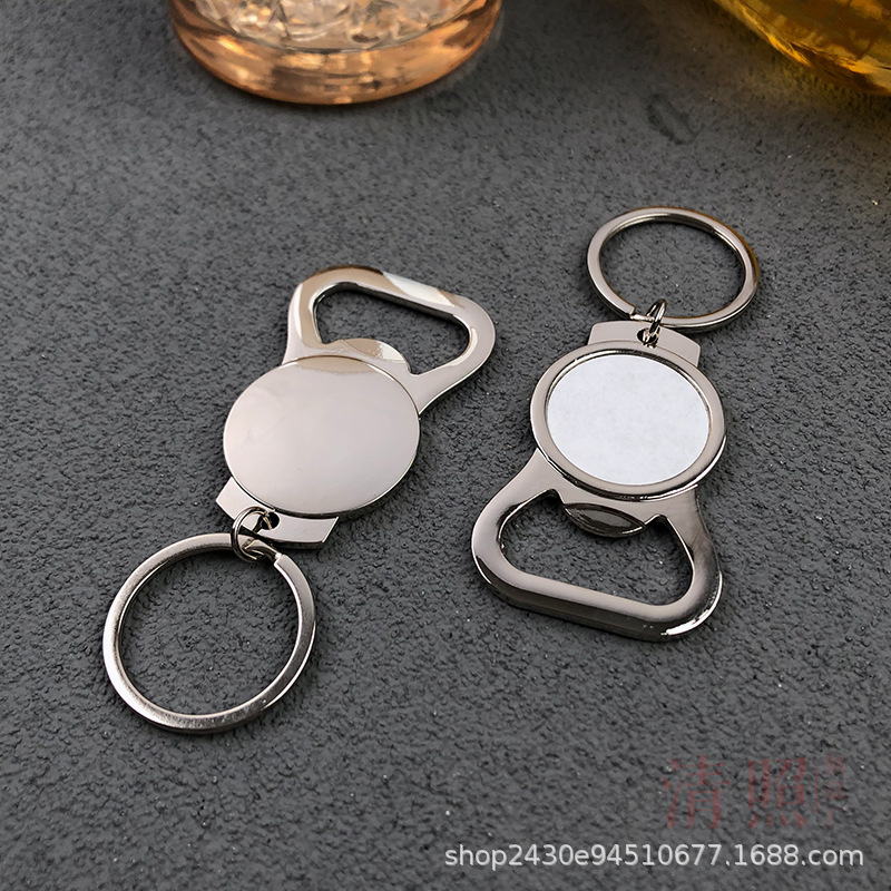 金属ラウンドブランドのビール栓抜き携帯キーホルダー飲料蓋ドライバー亜鉛合金瓶ドライバーレーザー印刷