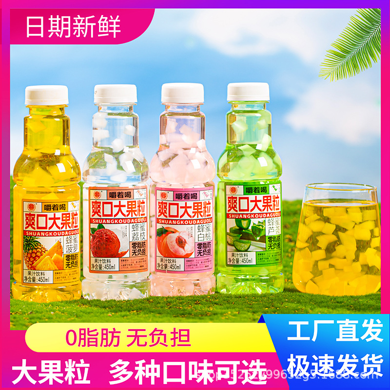 インターネット有名人の新製品ドリンク、大きなフルーツ粒入りのジューシーなフルーツドリンク、全箱卸売、アロエベラとパイナップル風味の学生向けスーパーマーケットドリンク