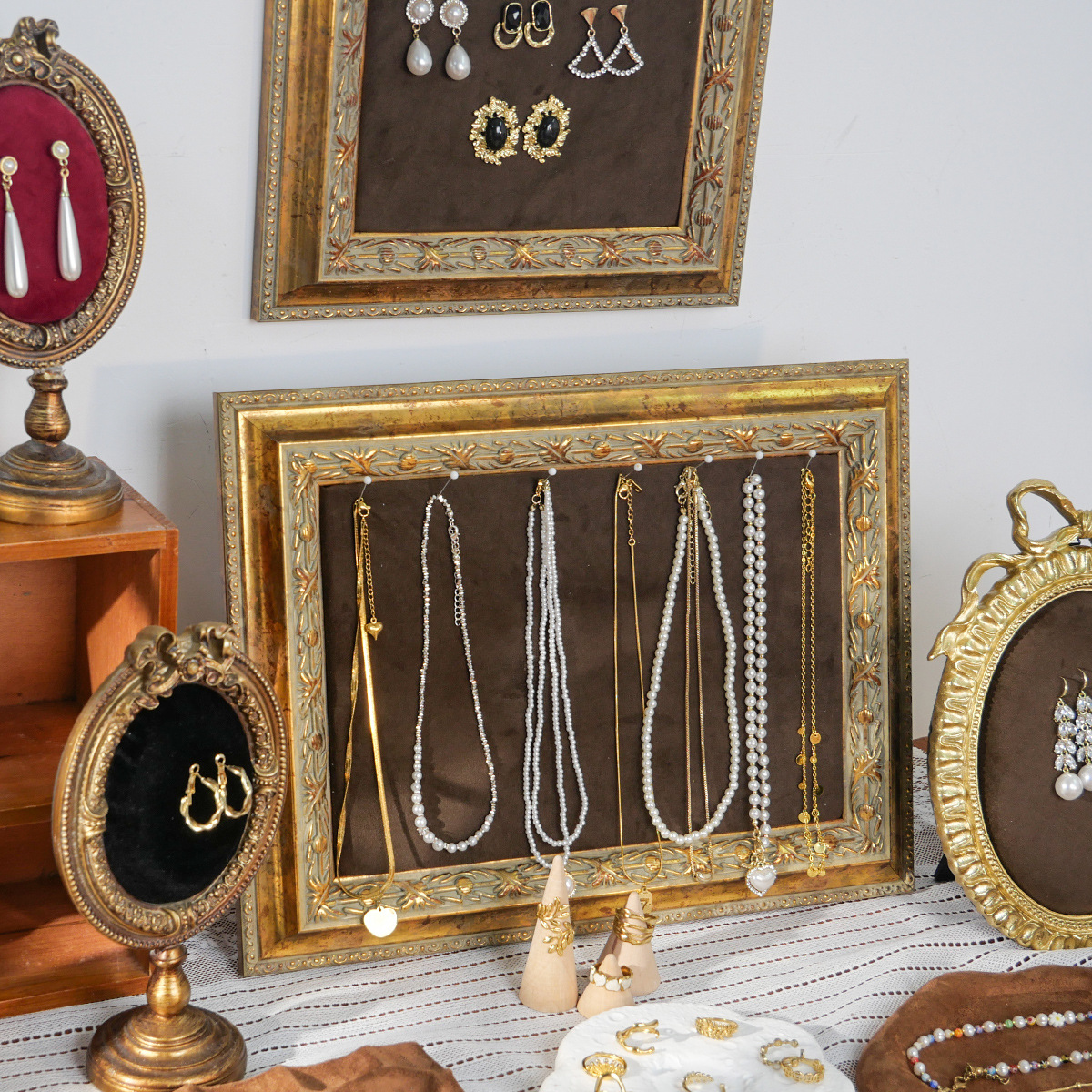 レトロなフォトフレームアクセサリー棚アクセサリー収納棚創意ピアス展示板イヤリング棚ネックレス棚ジュエリー道具