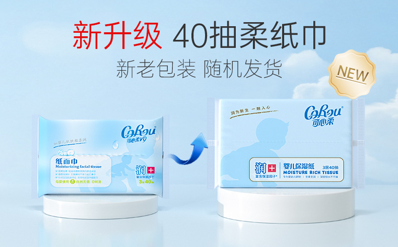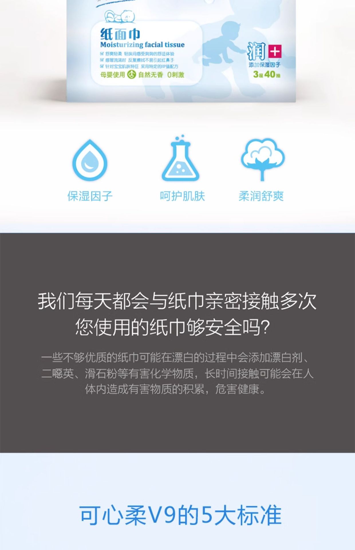 可心柔V9新生児赤ちゃん専用ソフトティッシュ保湿雲柔クリーム紙3層40抽出家庭用卸売り