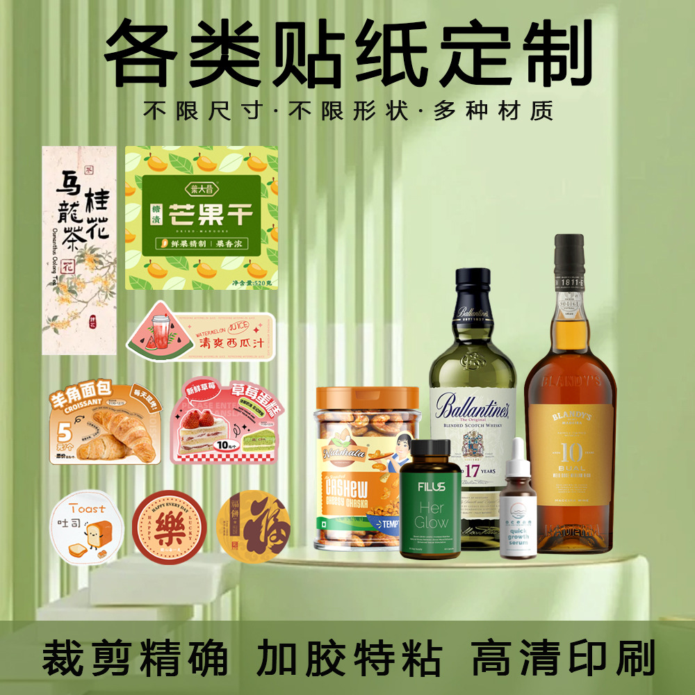 粘着ロゴシール製作商標二次元コード広告防水透明ラベル販売ミルクティーカップシール