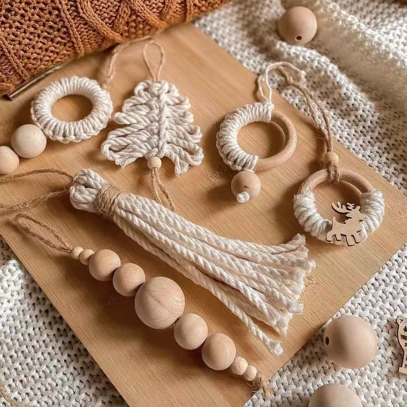 北欧风圣诞节棉麻线编织装饰配件迷你圣诞树装饰挂件礼盒装饰2025