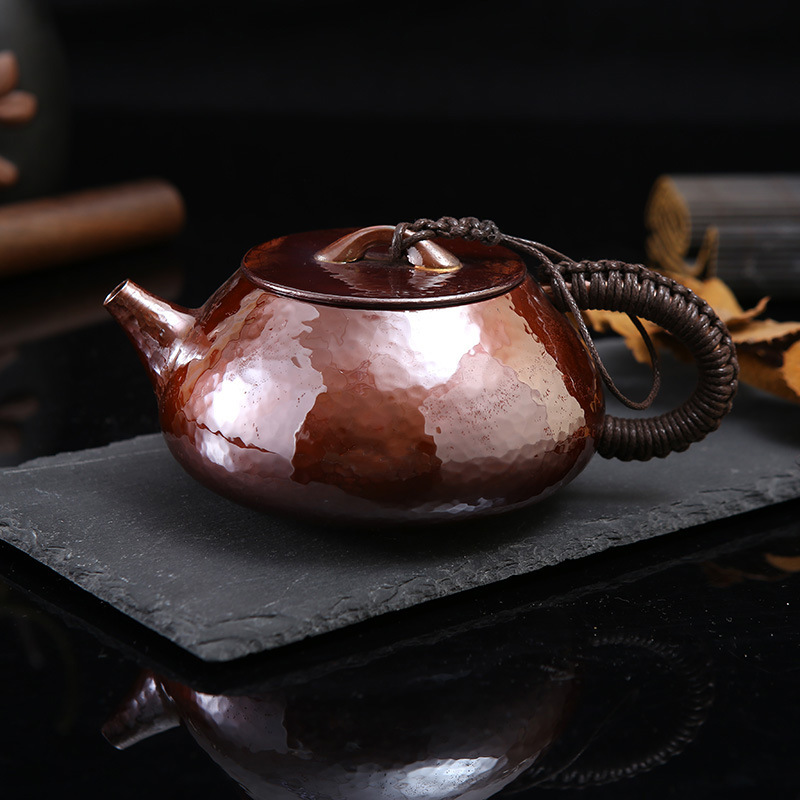 厳選された300MLのアマゾン石瓢手作り紫銅一体型熱染色テクスチャーティーポット、厚みのある小型銅ポット