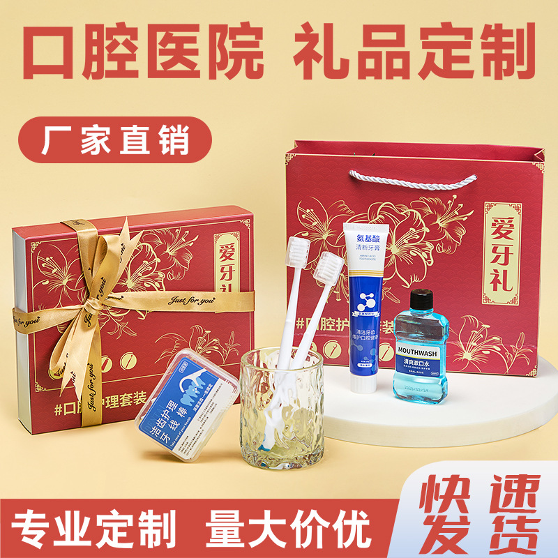 口腔病院ギフトボックス歯科開業外来歯ブラシ印字活動お土産歯糸嗽歯磨き粉ロゴ