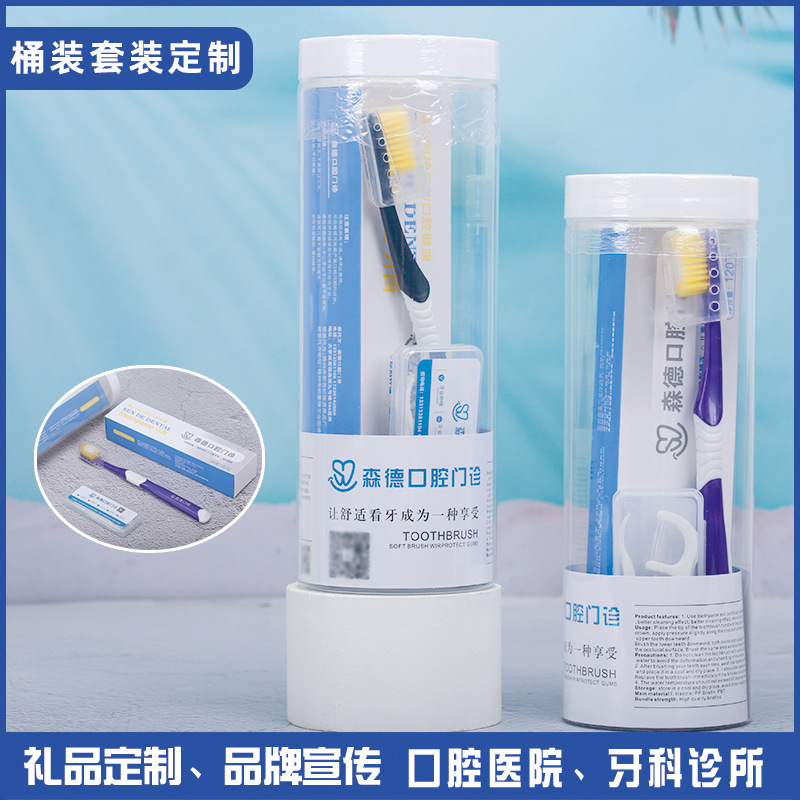 口腔病院歯科医院オープニングギフトプロモーションポータブルセット歯ブラシ歯磨き粉デンタルフロス印刷可能なロゴ