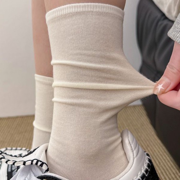 2025秋冬堆堆袜子女春夏薄款棉袜无骨韩国简约纯色潮流中筒袜
