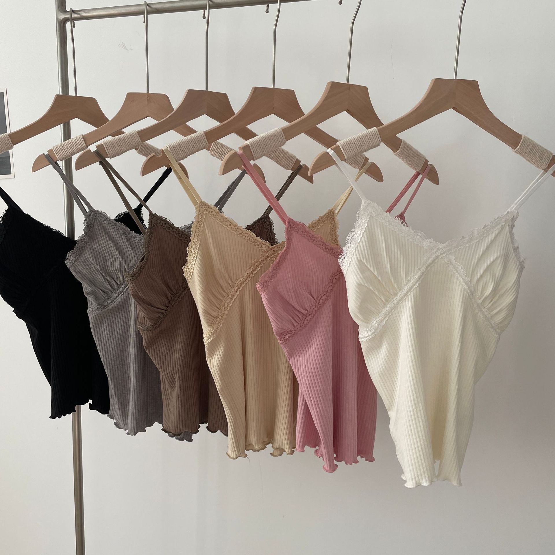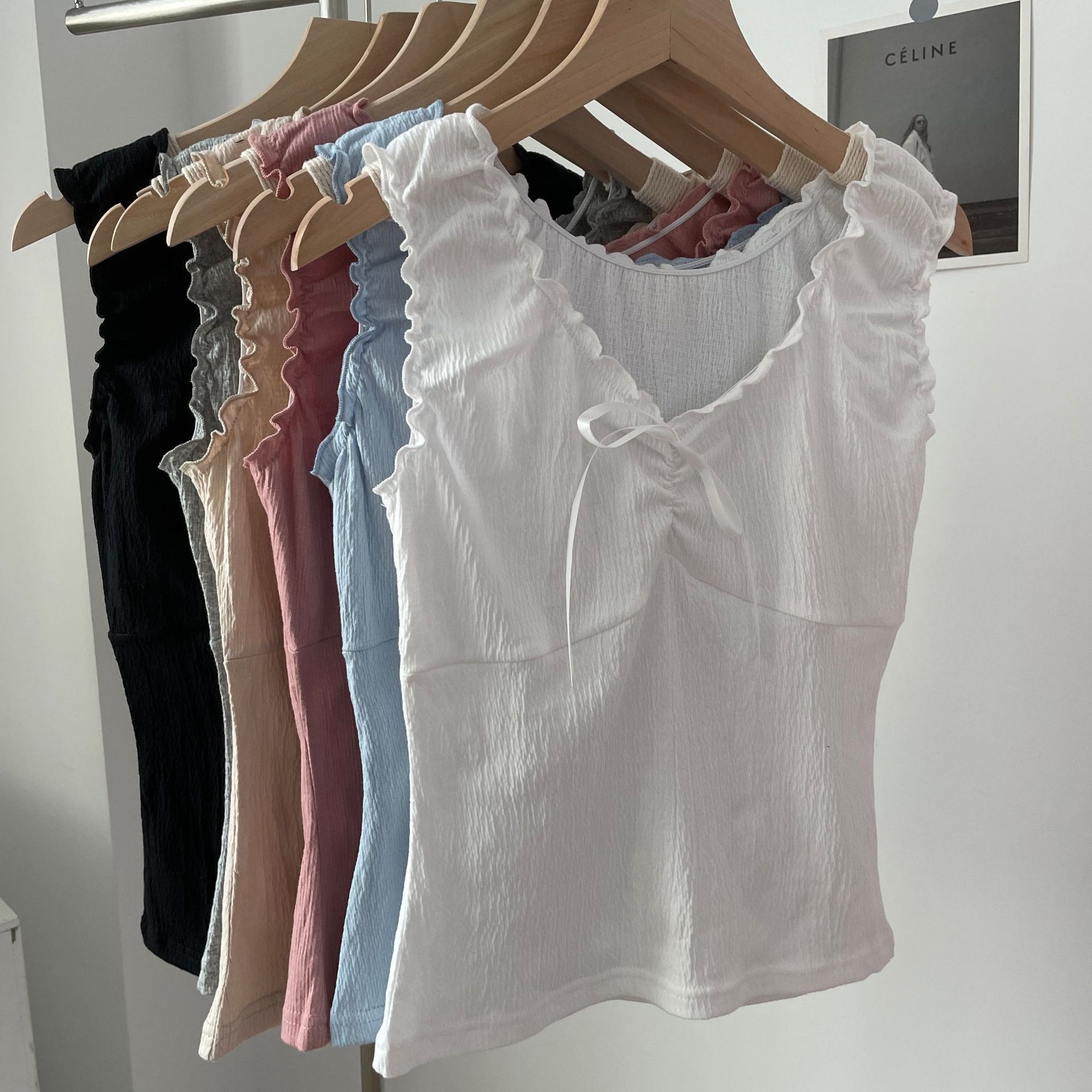 木耳袖Vネックキャミソール レディース 夏服 おしゃれ インナー ノースリーブTシャツ レース 細身 着痩せ ベースレイヤー トップス