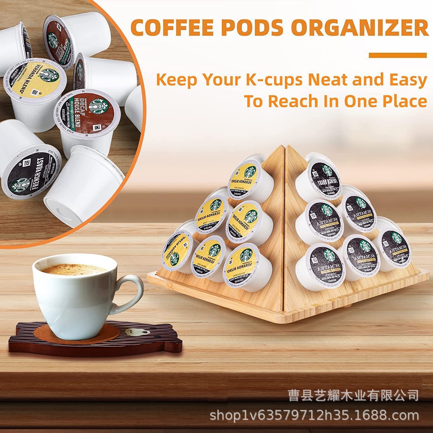 竹ティーバッグ収納ラック 24 無垢材コーヒーカプセル収納ラック木製三角形回転収納ラック