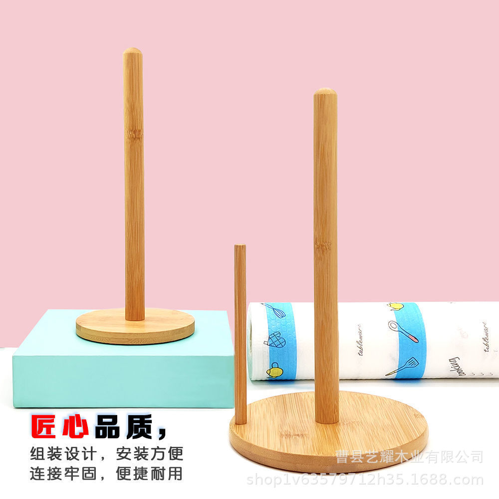 竹ロールペーパーラック垂直ペーパータオル収納ラックキッチンパンチフリーレイジーラグハンガー粘着フィルムホルダー