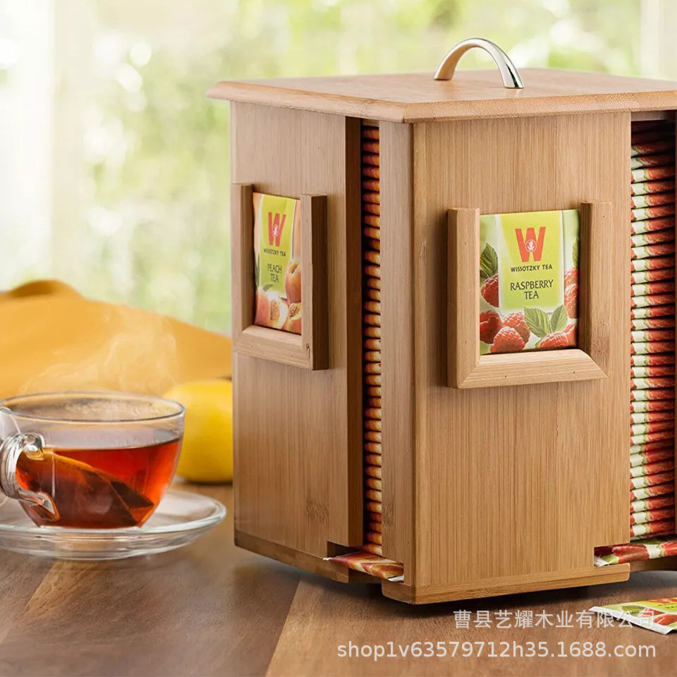 竹と木の分割茶収納ラックホームデスクトップ回転可能なティーバッグ収納ラックホテルの茶収納ラック