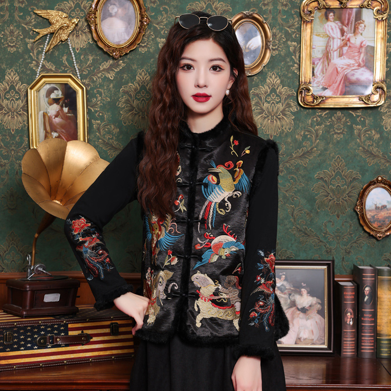 2024新中国風重工金鳳凰全身刺繍馬挟み女春夏気質盤バックル唐装馬甲女