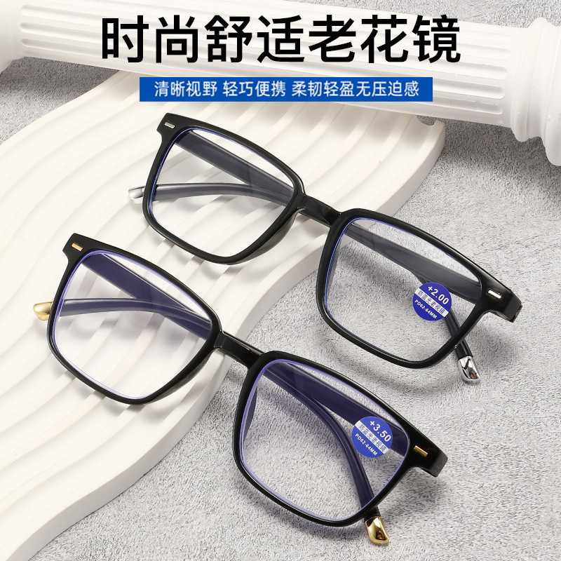 新款高清防蓝光老花镜男女款超轻中老年方框时尚老花眼镜厂家批发