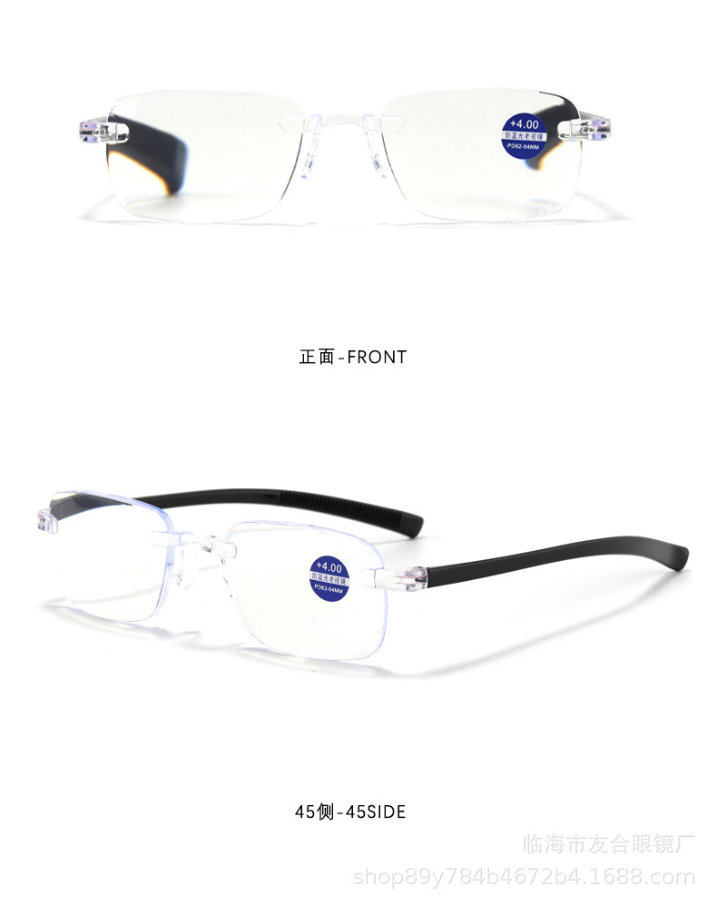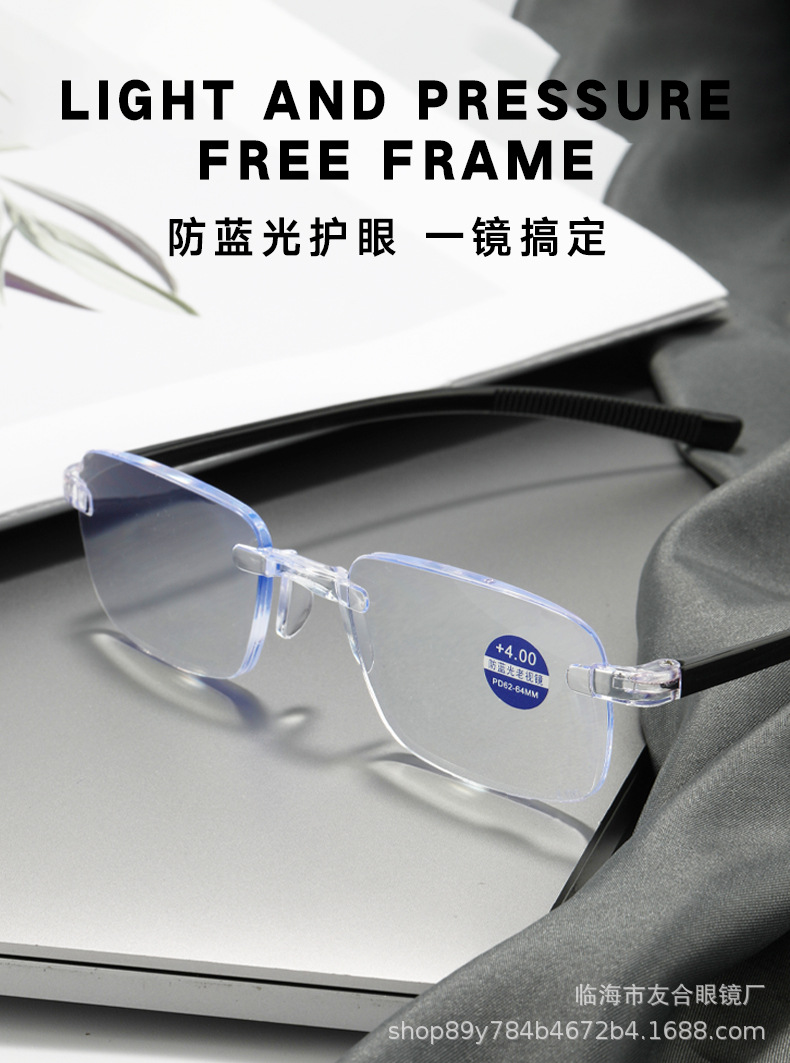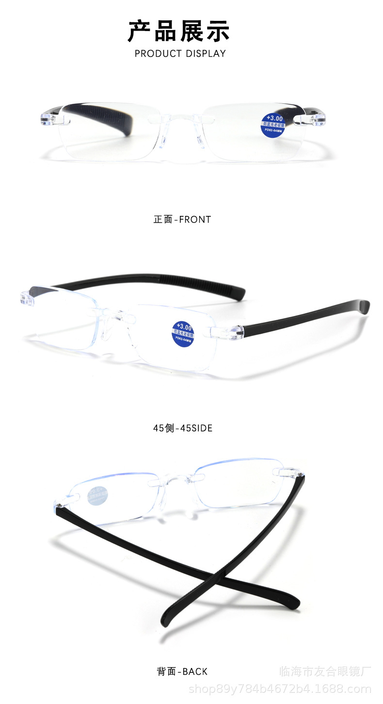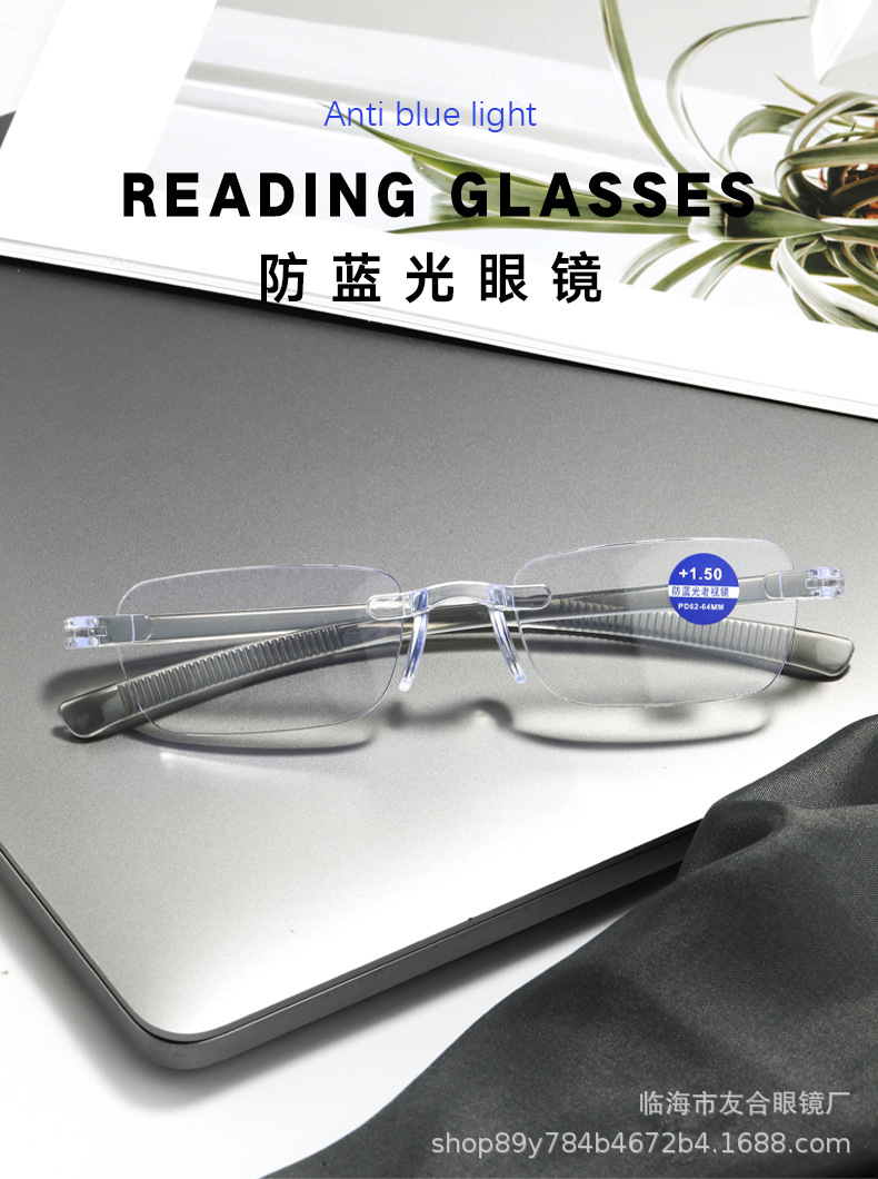 ファッショナブルな新しい抗ブルーライト老眼鏡フレームレス老眼鏡カットエッジ露店老眼鏡工場直販