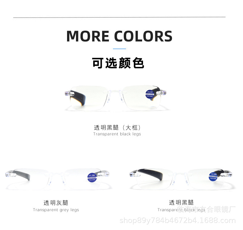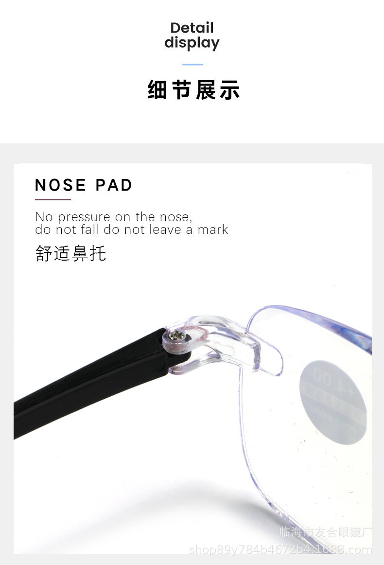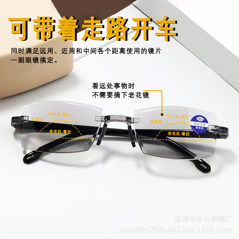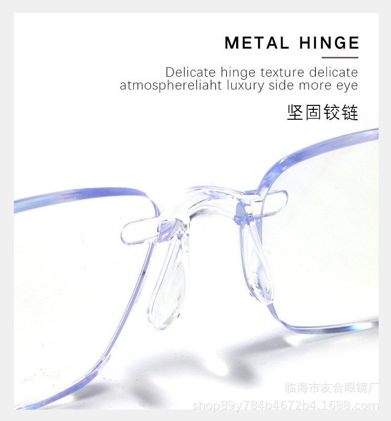 ファッショナブルな新しい抗ブルーライト老眼鏡フレームレス老眼鏡カットエッジ露店老眼鏡工場直販