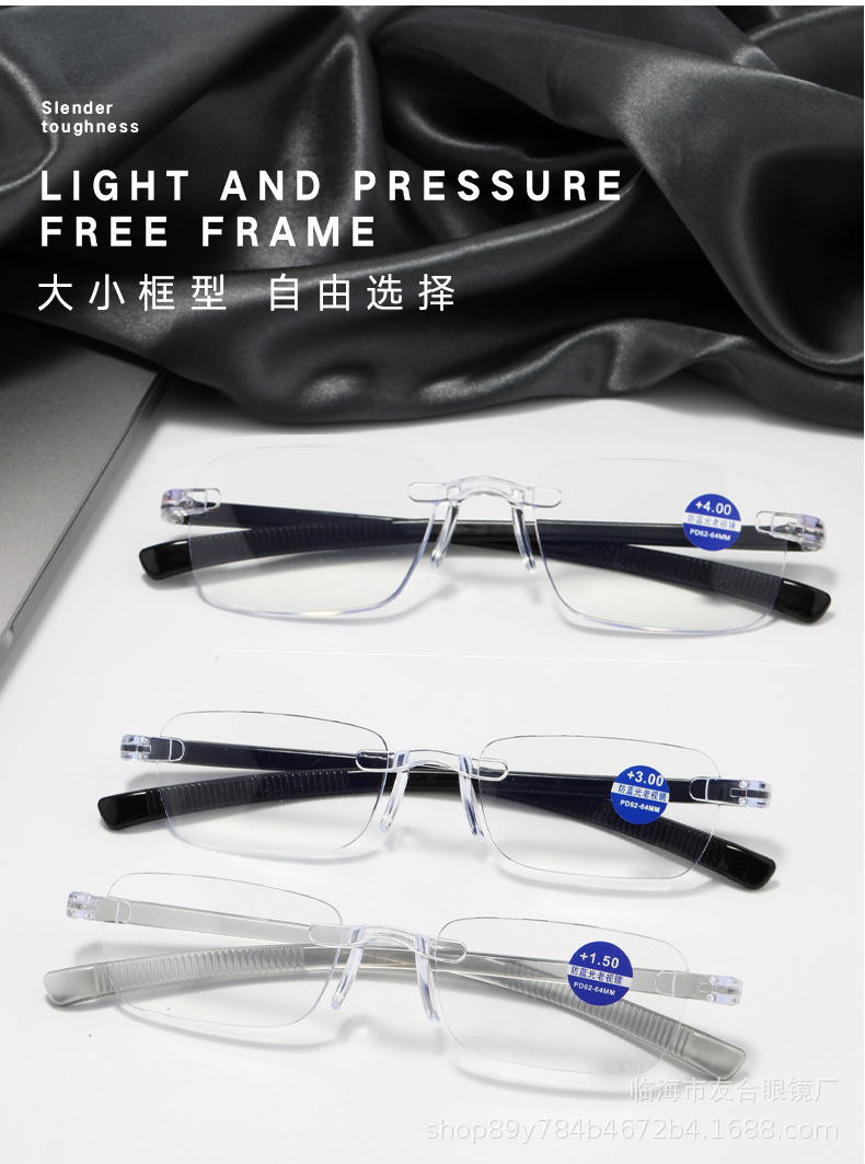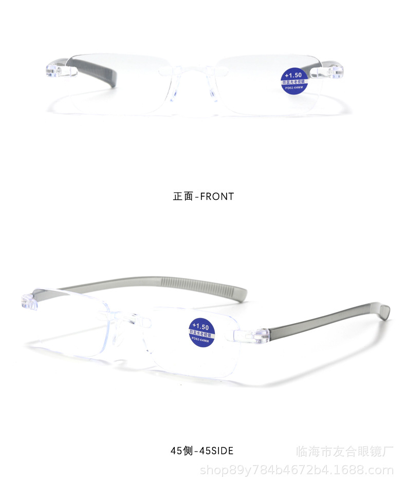 新商品のフレームなし老眼鏡卸売りブルーレイカット防止老眼鏡樹脂ハイビジョン老人読書メーカー直販