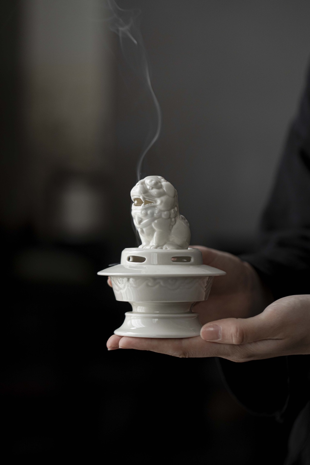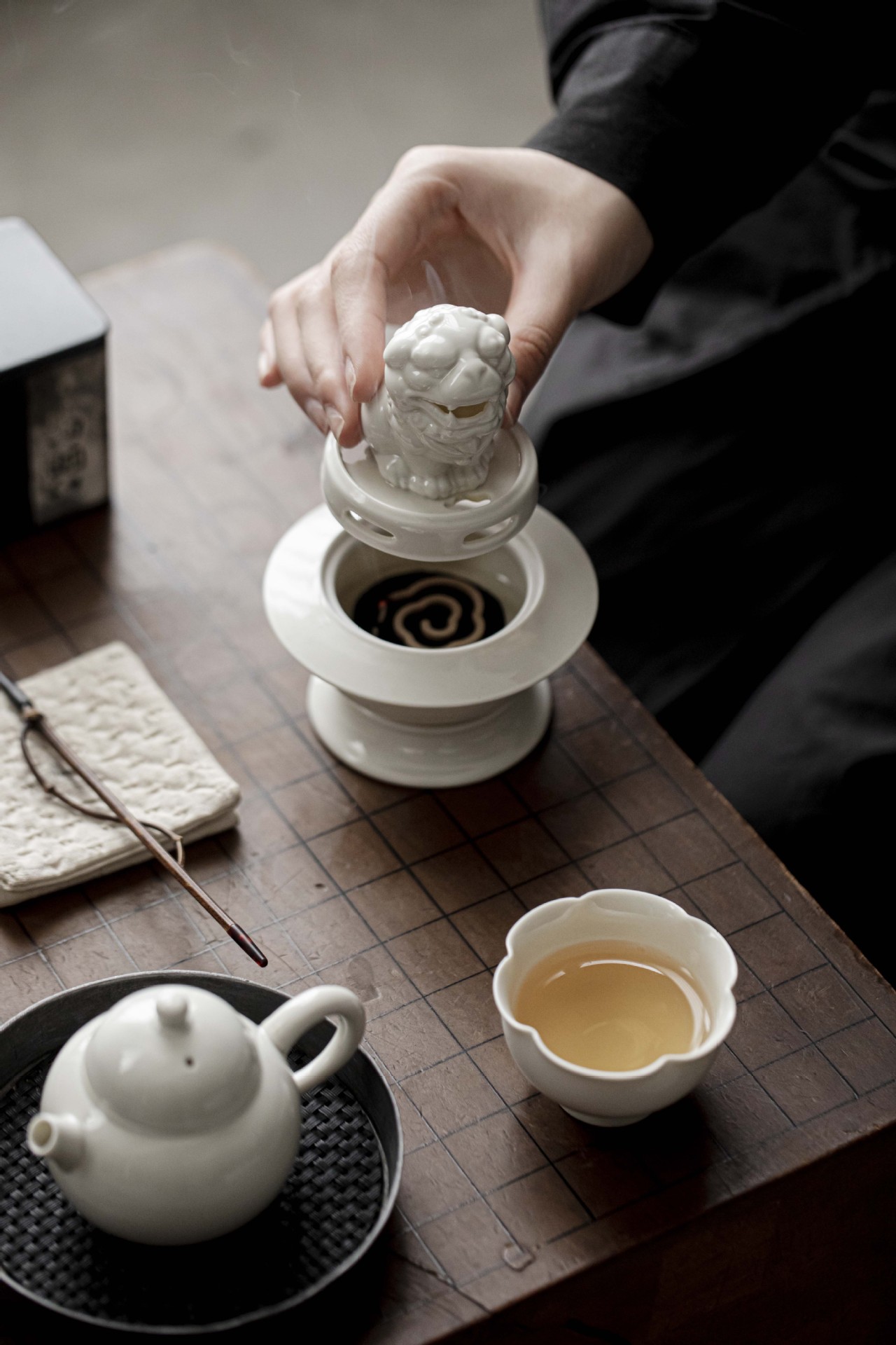 宜室茶話草木灰陶磁器瑞獣香炉中国式禅意浮彫沈香檀香炉香灰香道