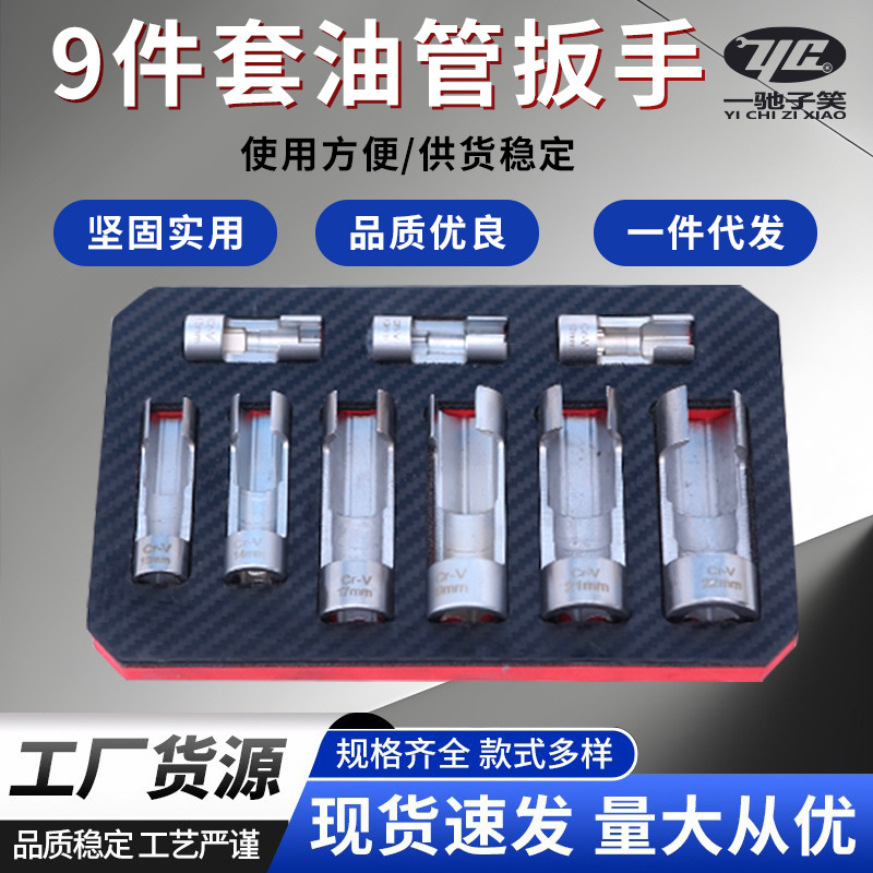 9件套开口油管套筒拆卸扳手开口六角扳手开口扳手油管扳手氧传感