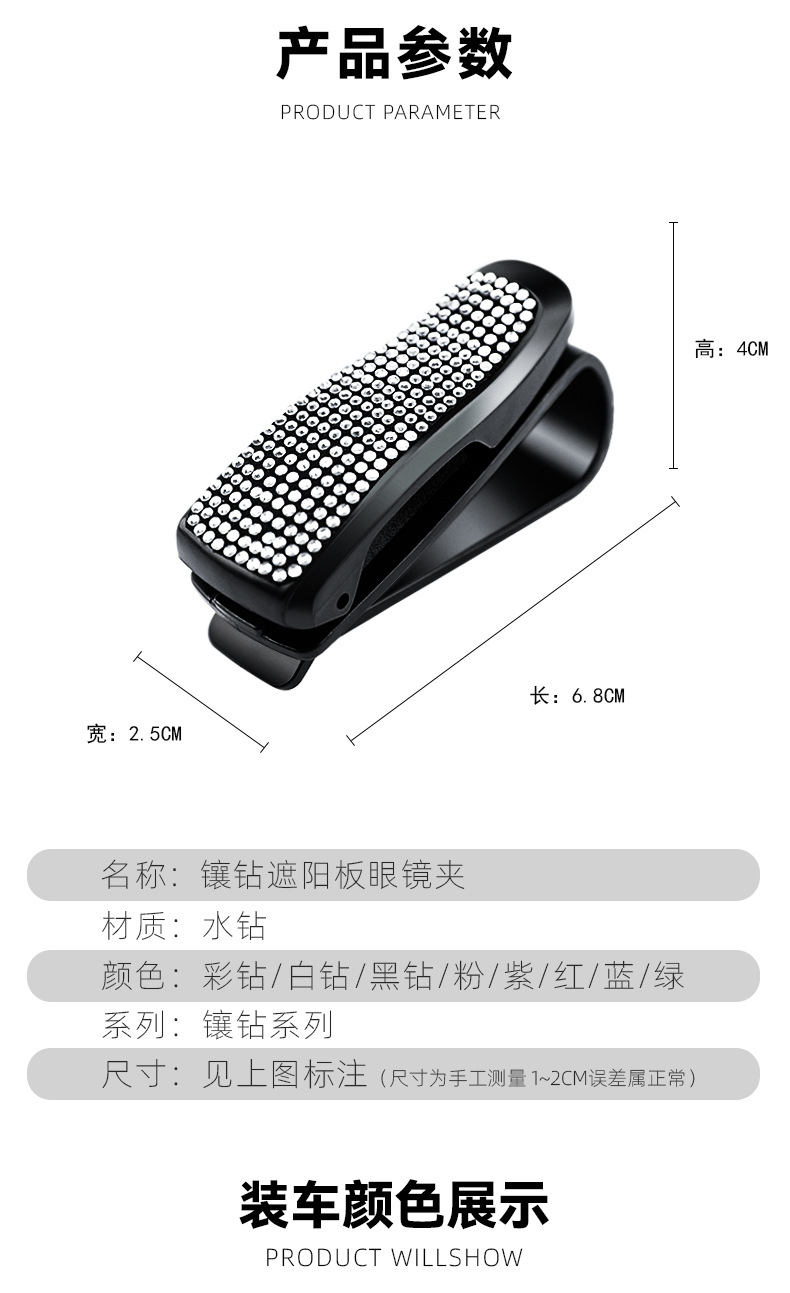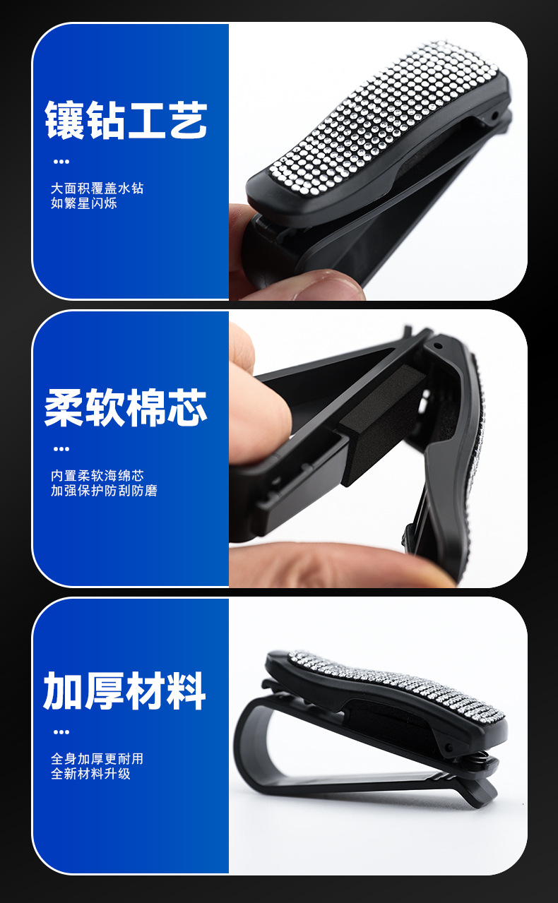镶钻汽车眼镜夹多功能高端时尚眼镜夹创意多功能车用遮阳板眼镜夹