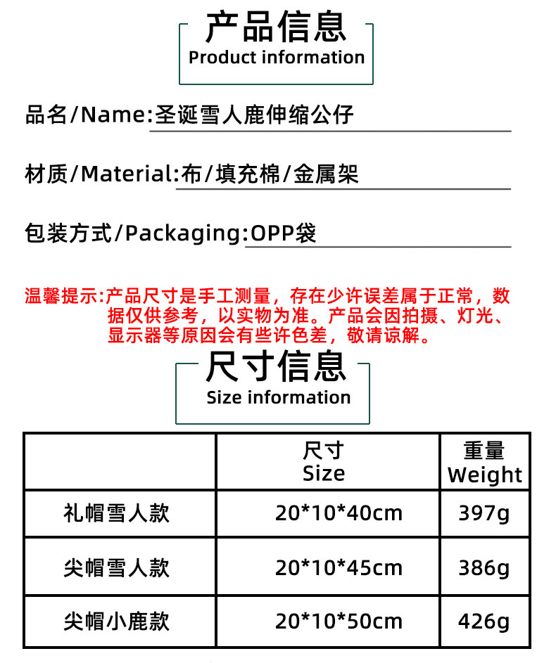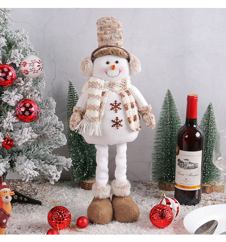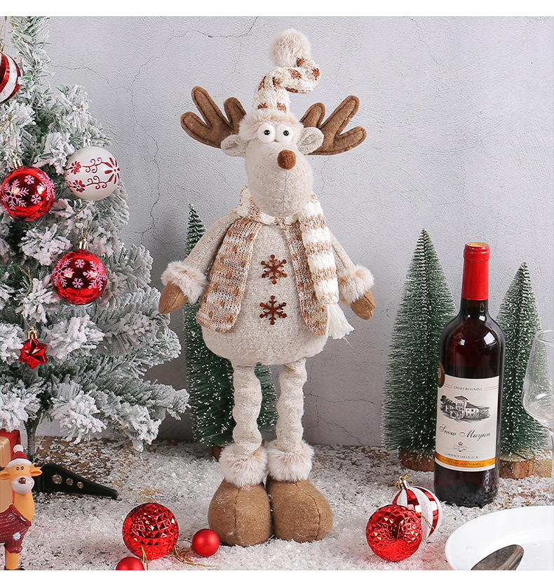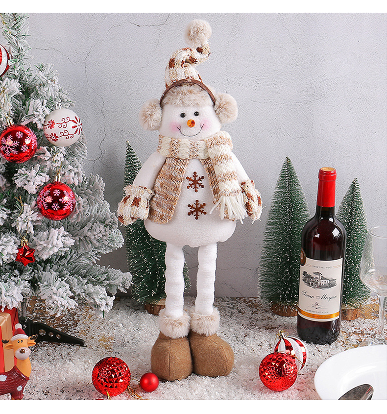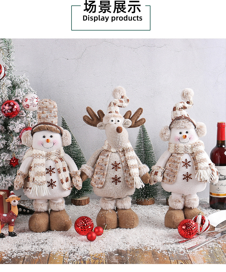 跨境新品圣诞雪人伸缩公仔麋鹿公仔摆件针织娃娃节日橱窗场景布置