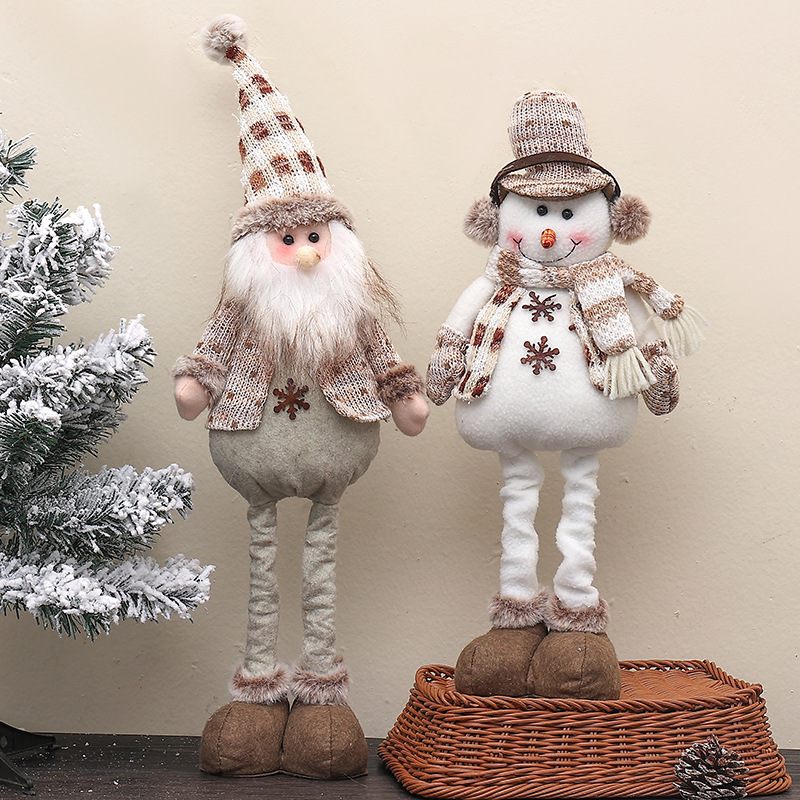国境を越えた新しいクリスマス装飾品伸縮長脚雪だるま公仔暖かい茶色のニット人形クリスマス祭り公仔