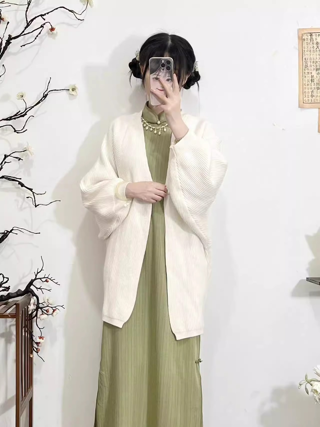 白の逆大袖長袖チャイナドレス秋冬日常改良民国大お嬢さんの絶美気質高級感