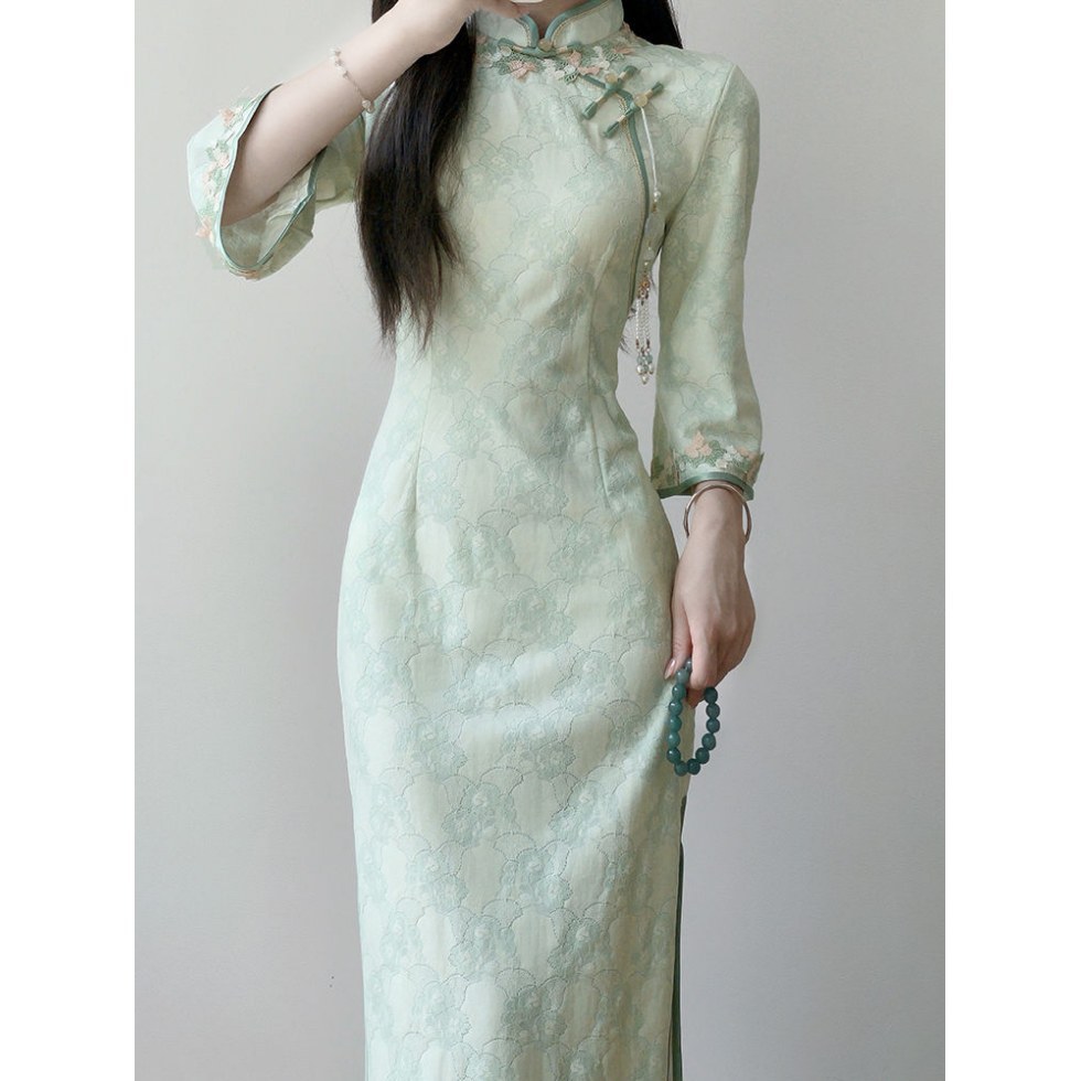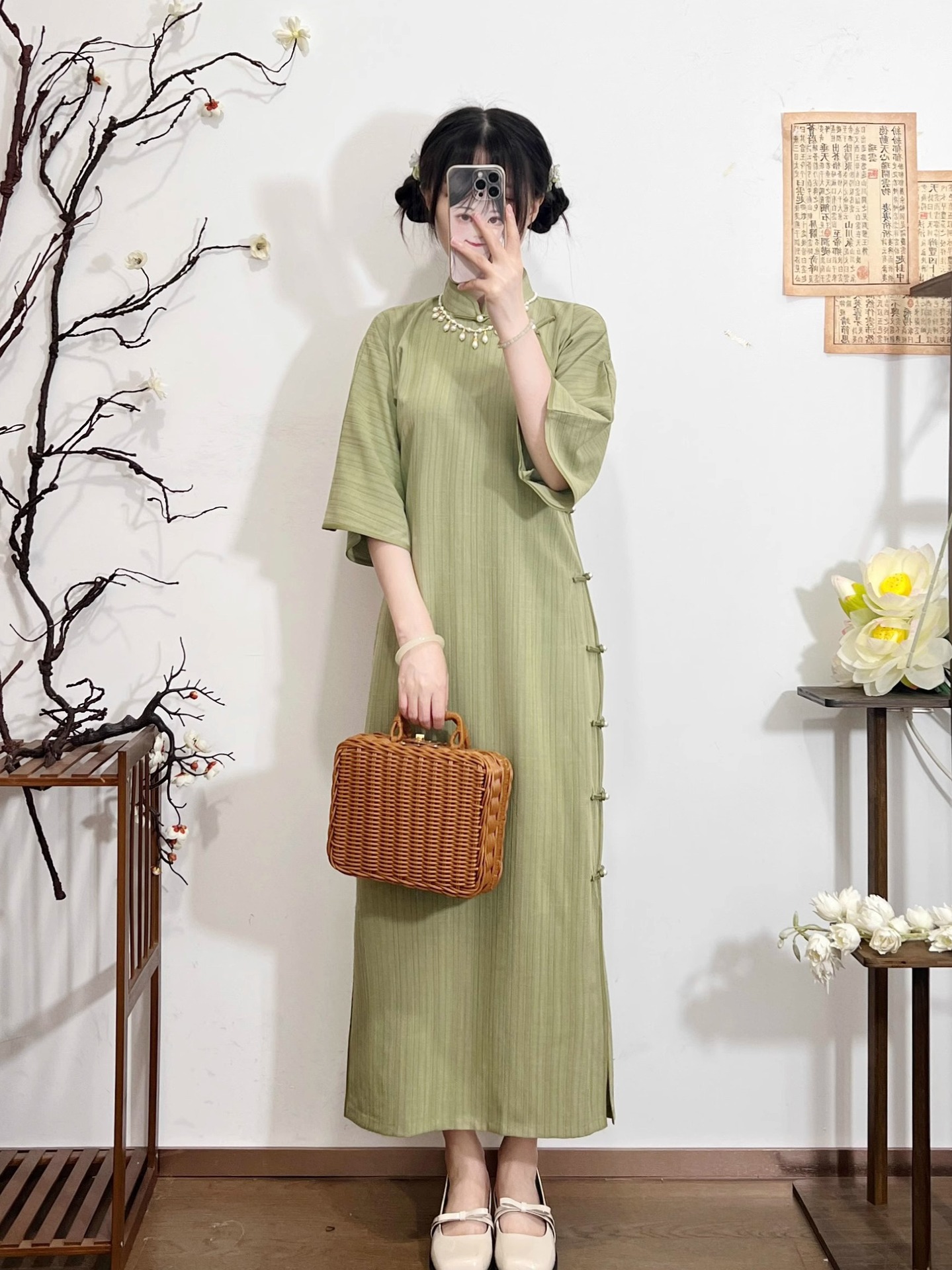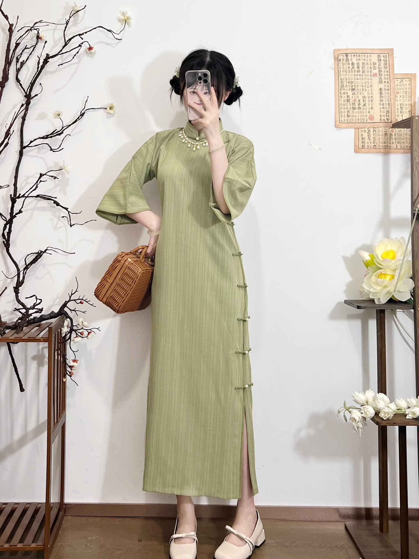 古法チャイナドレスの新型2024年夏の新型文芸復古新中国式グリーン倒大袖復古民国風