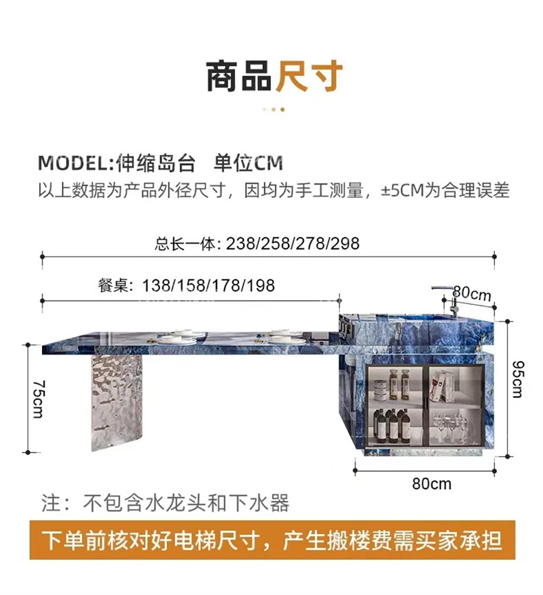 岩板島台食卓一体家庭用伸縮可能高級設計可能キッチン移動水槽単中ガイド台