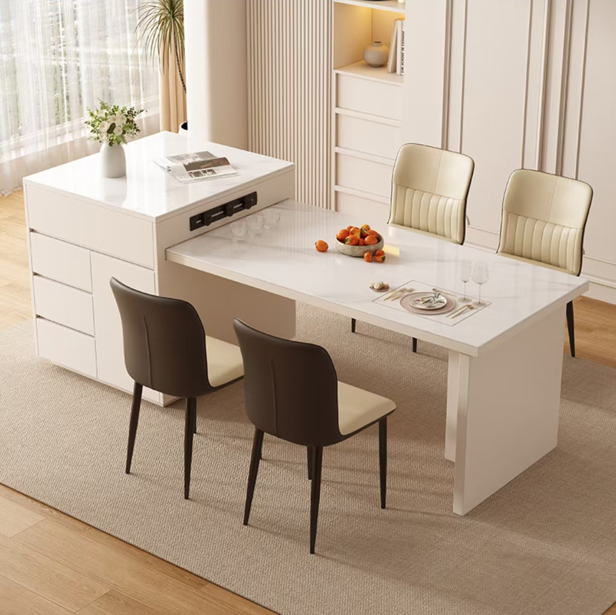 2024新型実木岩板食卓島台伸縮クリーム風多機能食卓家庭用テーブルと椅子の組み合わせ