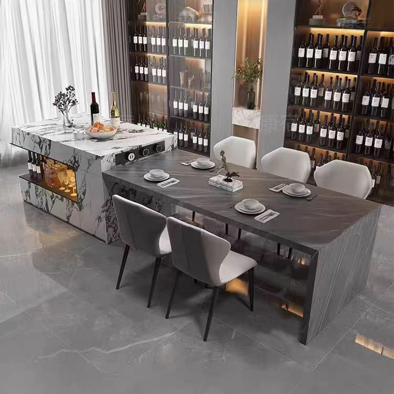 軽豪華現代極簡島台食卓一体岩板家庭用中倒台多機能貯蔵大戸型バーガイド台