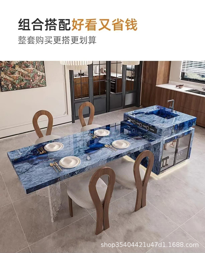 浮遊島台食卓一体岩板案内台キャビネット完成品はオープンキッチンのカウンターを設計できます。