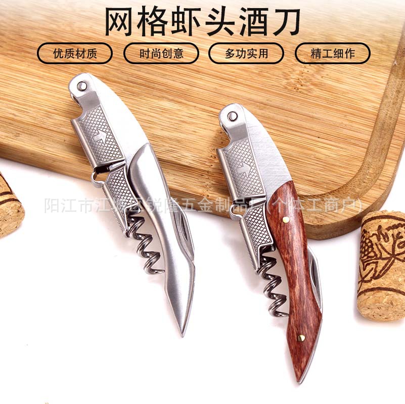 卸売赤ワイン海馬型栓抜き、ローズウッド無垢材メッシュエビ型栓抜き、全鋼ワインナイフ、多機能