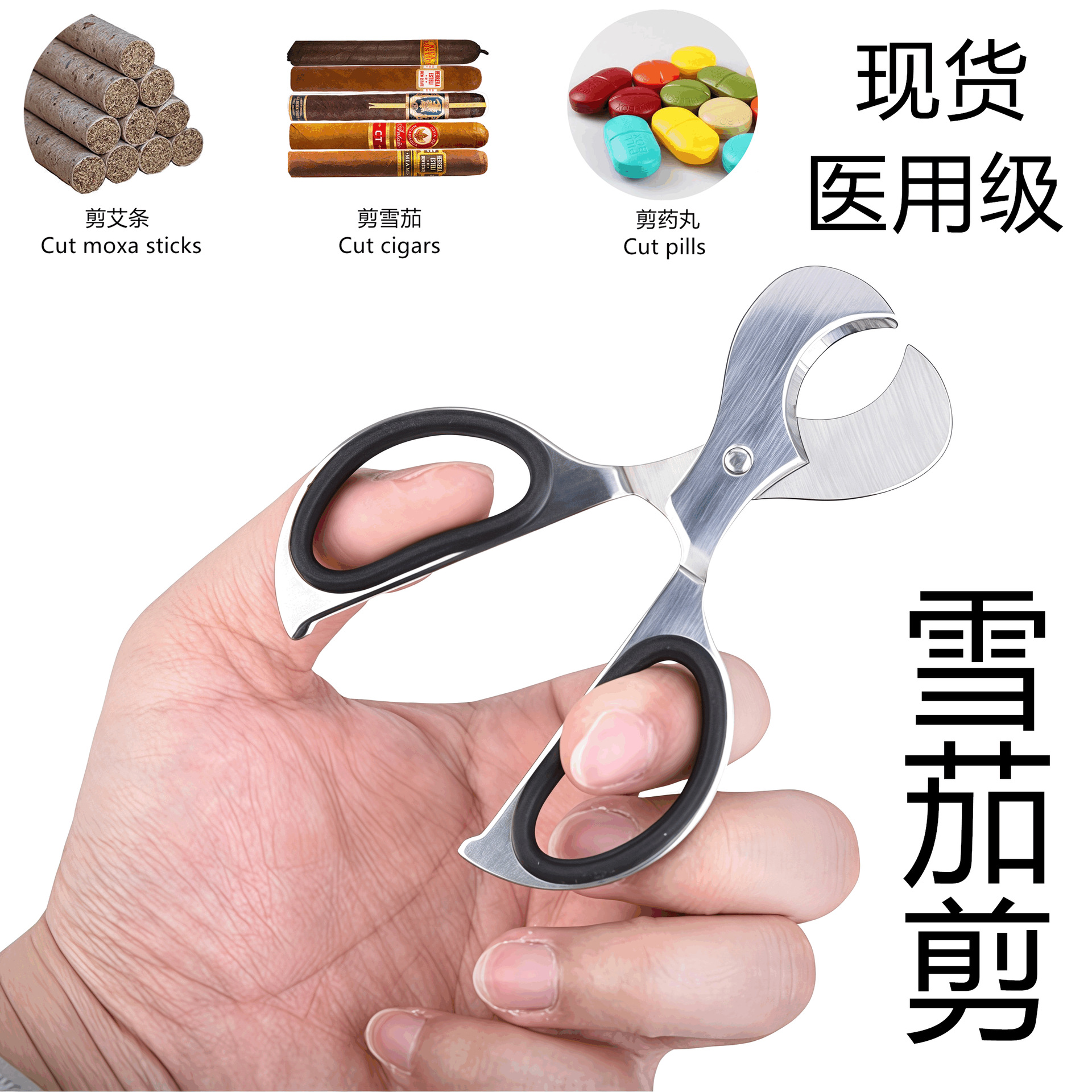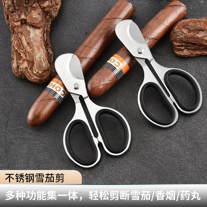 不锈钢双刃雪茄剪金属烟具雪茄药片分割器药剪手柄式剪刀便携折叠